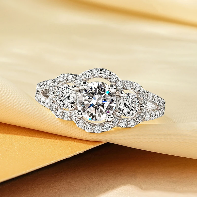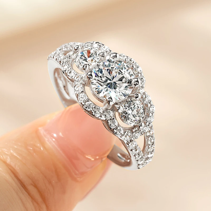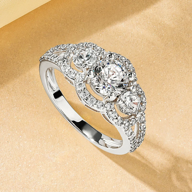 Ring Style 1: Three Stone Halo Round ring