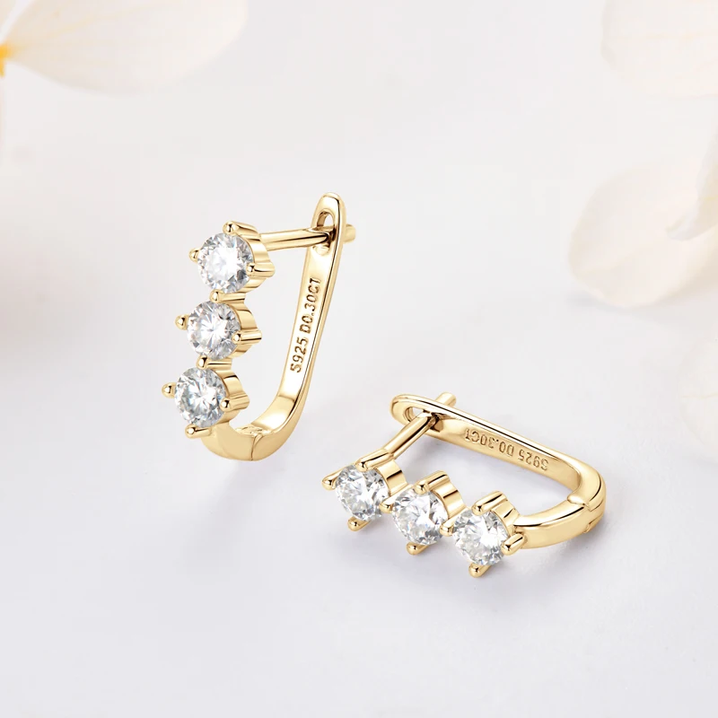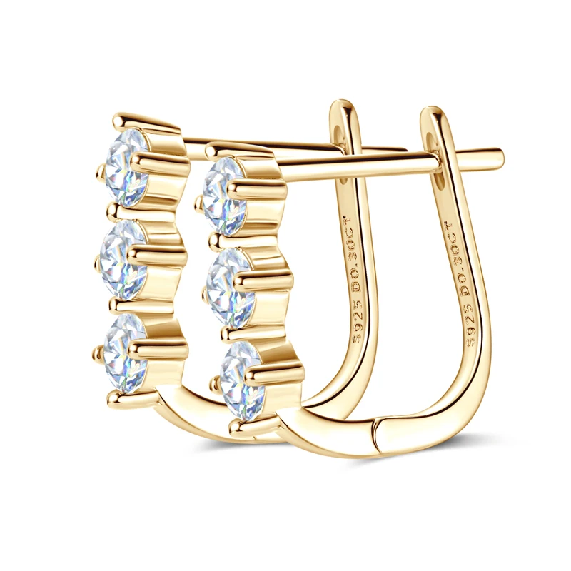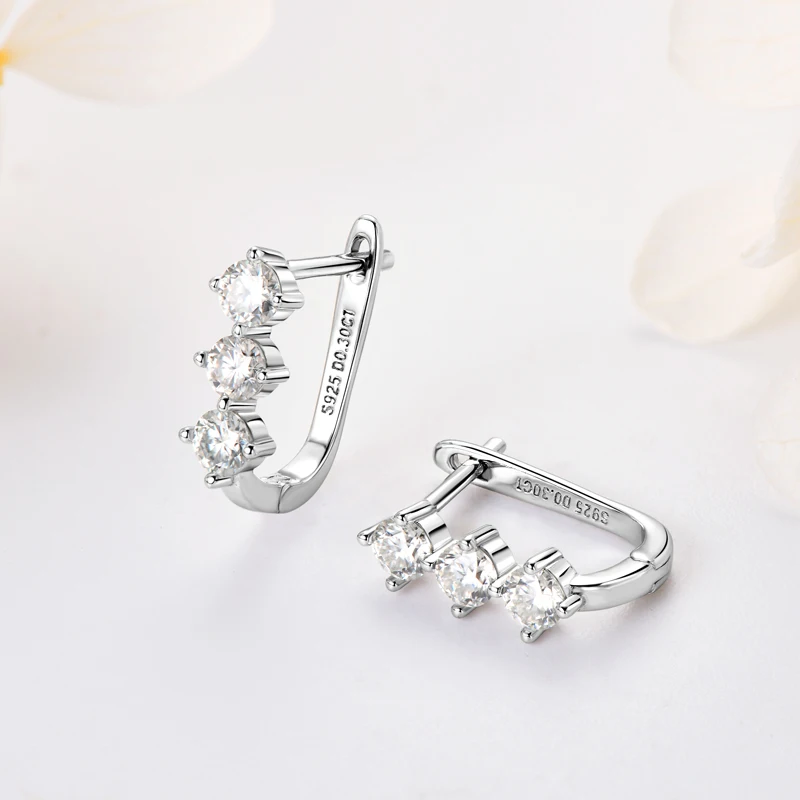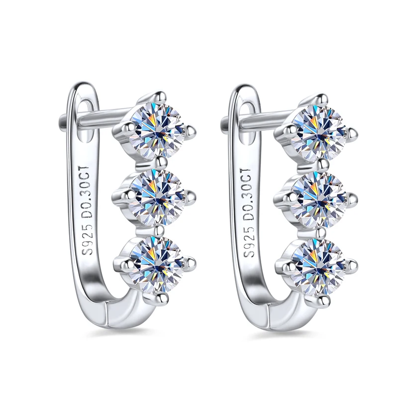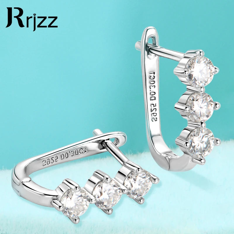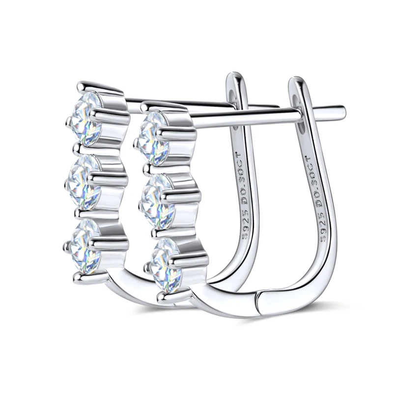 Rrjzz Classic U-shape All Moissanite Hoop Earring Exquisite 925 Sterling Silver Women Engagement Earring for Female Fine Jewelry