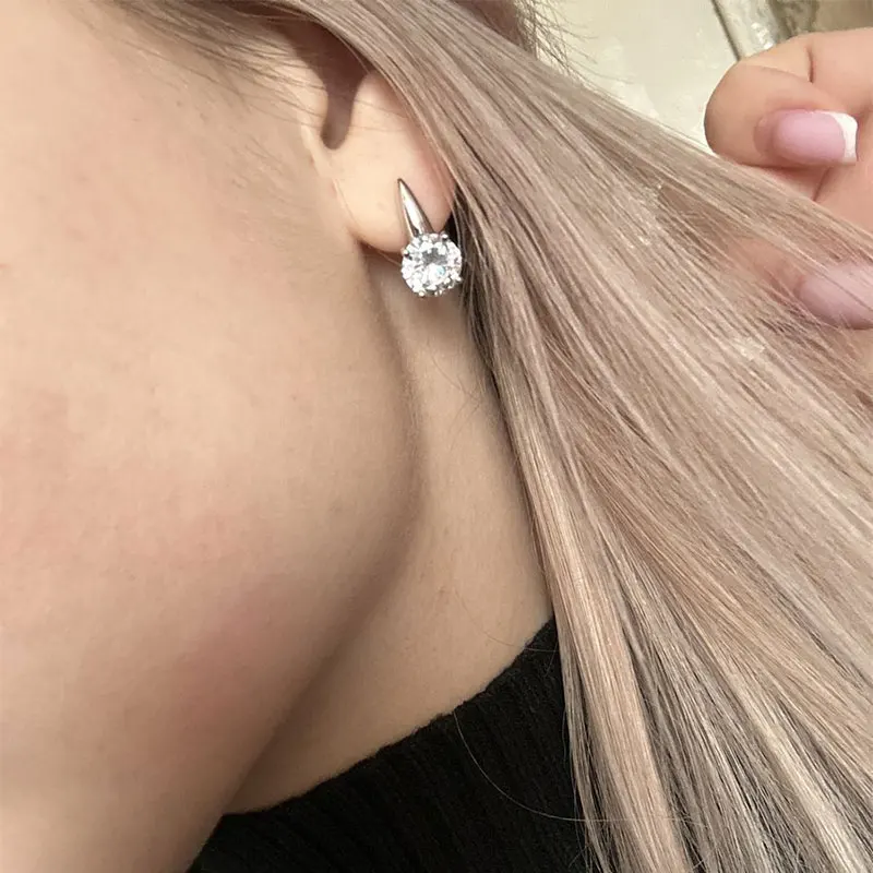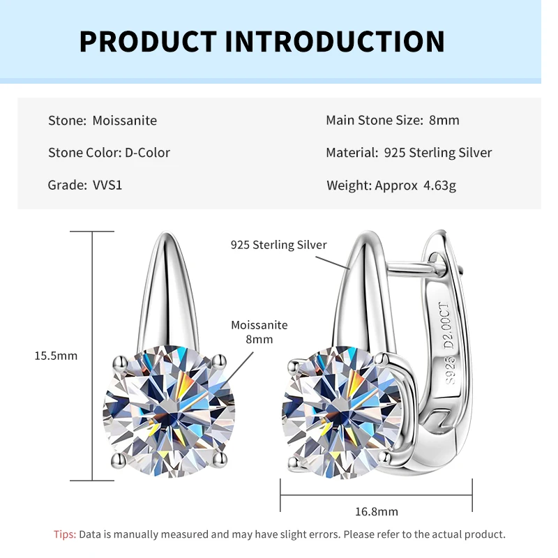 Rrjzz Fashion 8mm D-Color Moissanite Solitaire Engagement Earrings VVS1 925 Sterling Silver Exquisite Women Hoop Earring Jewelry