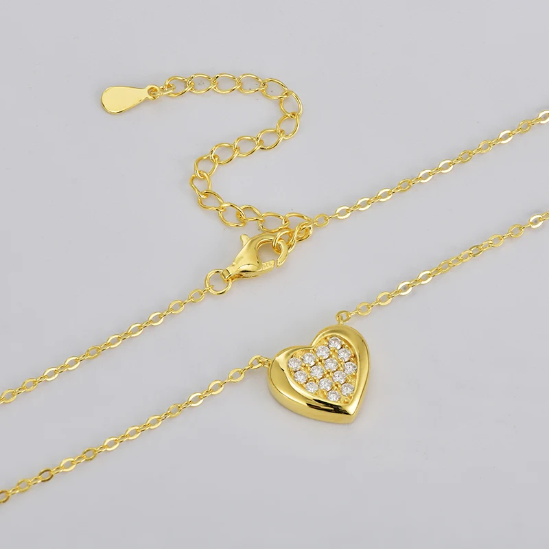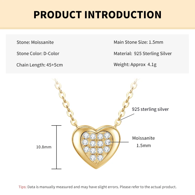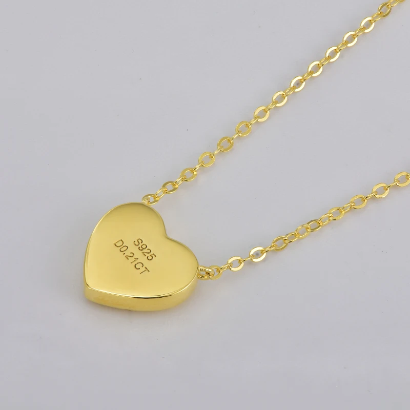 Rrjzz Full Moissanite Heart Shaped Pendant Necklace for Women with Certificate 14k Plated 925 Sterling Silver Chain Jewelry Gift