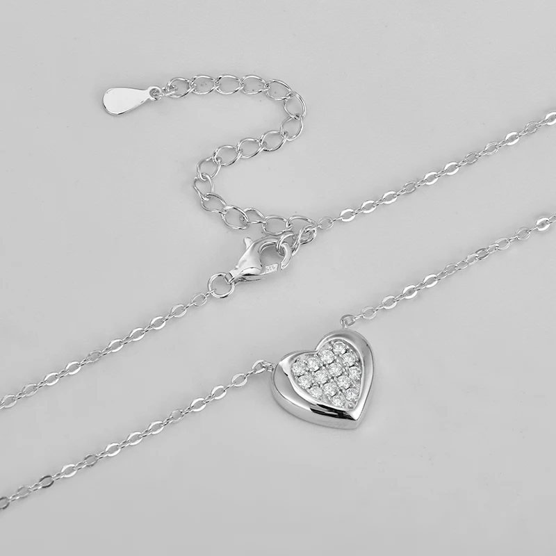 Necklace Style 1: 925 Sterling Silver Heart Pendant Necklace,All Moissanite Women Necklace