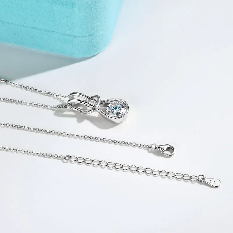 Necklace Style 1: 925 Sterling Silver Women Necklace,Moissanite Fashion Knot Pendant Necklace